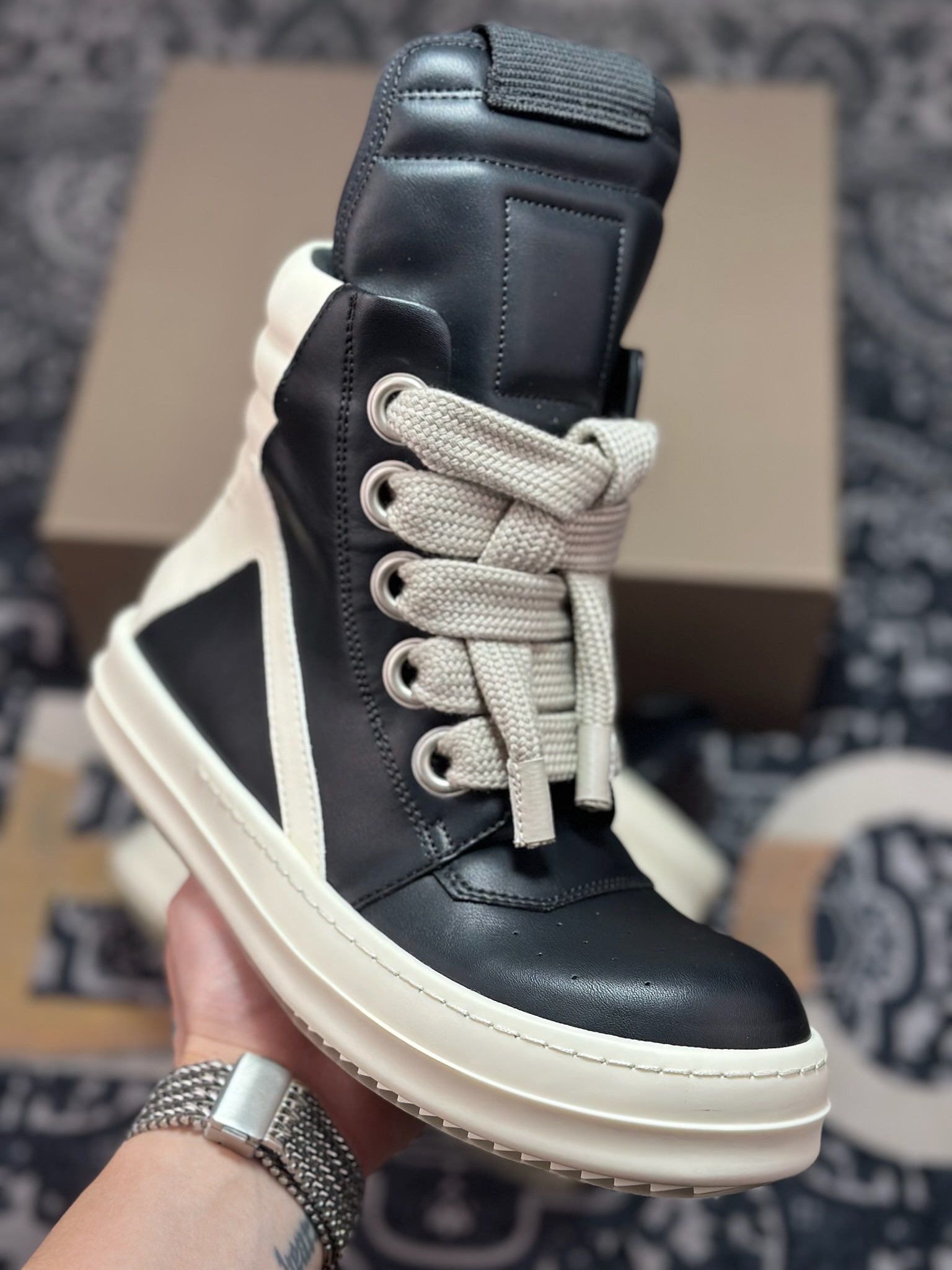 优选 原装级别 Rick Owens 瑞克 欧文斯 高帮休闲鞋 高端零售外贸专供品质 升级原楦原纸版开发版型 外加定制保护盒 鞋盒质感拉满 虽然增加不了多少实质的成本 但是打磨产品的细节 再微小也会还原 尺码:36 37 38 39 40 41 42 43 44 45 46 &47