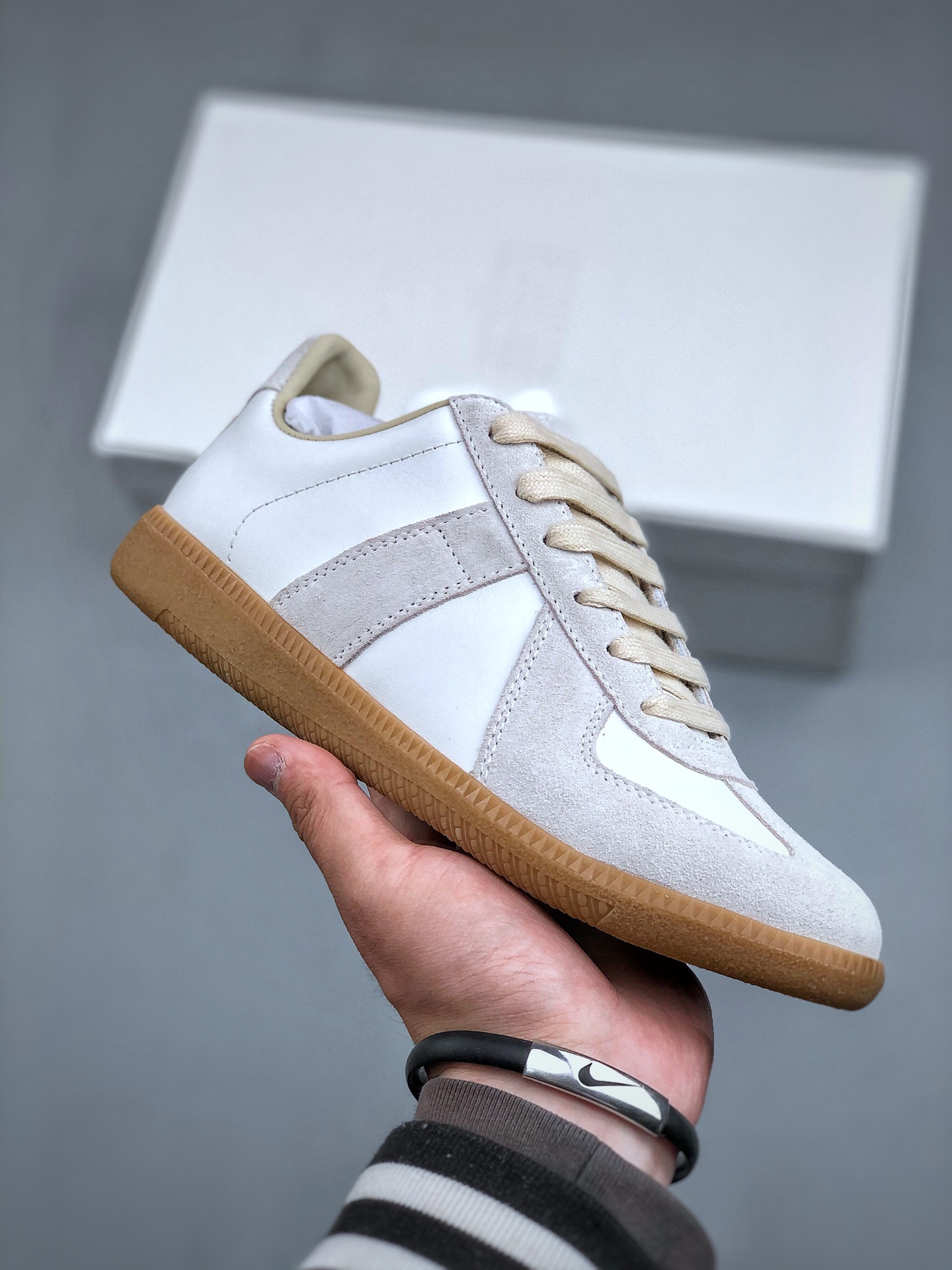 Maison Margiela 22 Classic Replica Leather Low Sneaker 系列低帮经典绅士德训平底百搭小白板鞋“黑焦糖底