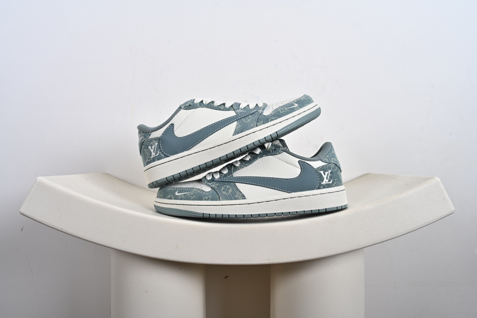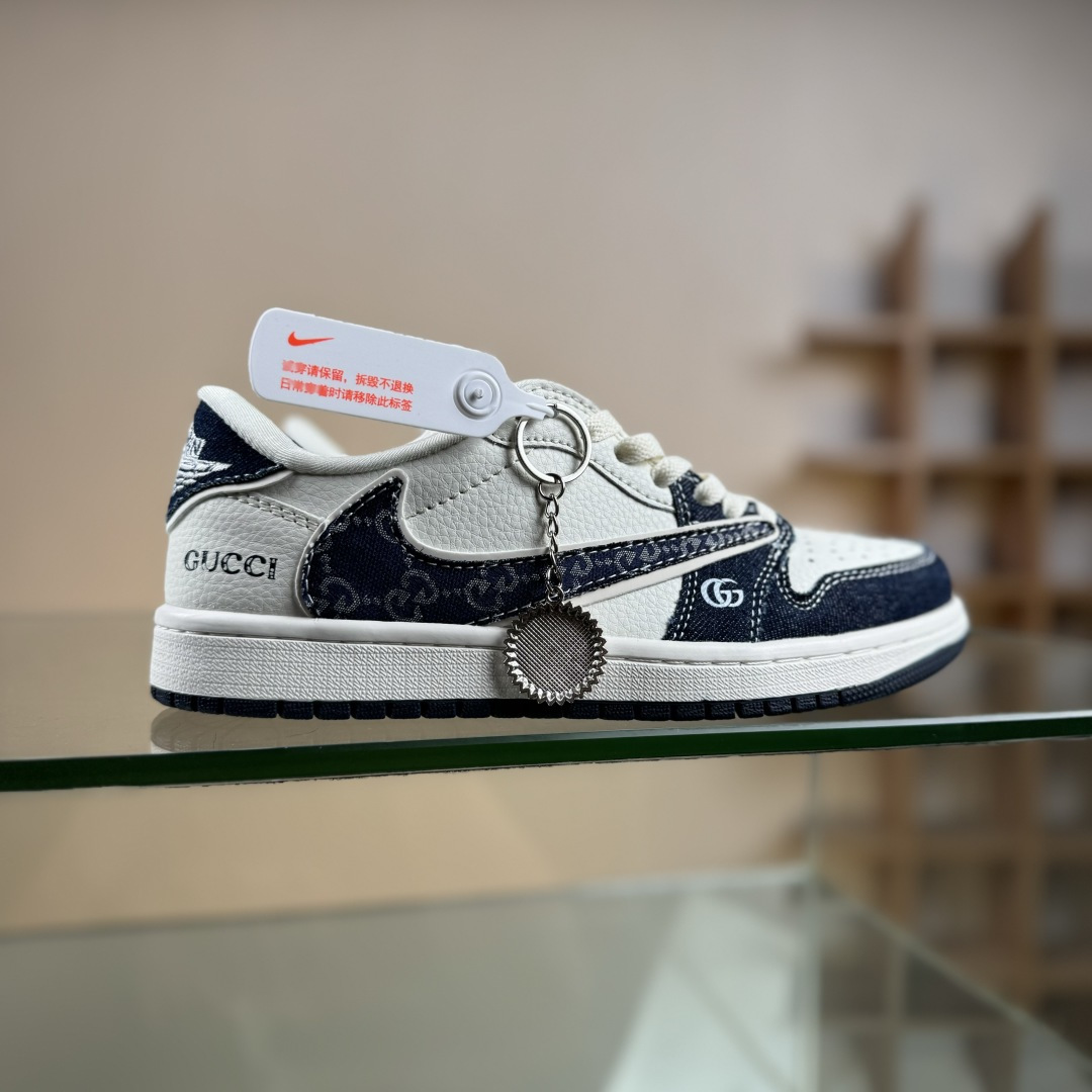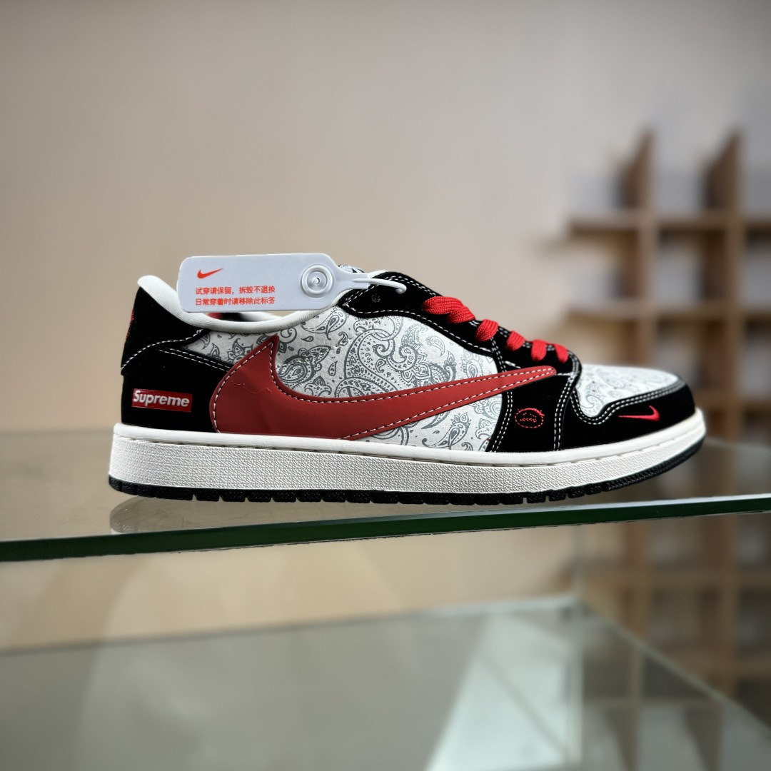 定制版Stussy x Travis Scott x Air Jordan 1 Low 斯图西 x AJ1 低帮 灰白黑倒勾联名 AJ1 乔丹1代 aj1 乔1 低邦 灰白黑倒勾联名 XD1568-109