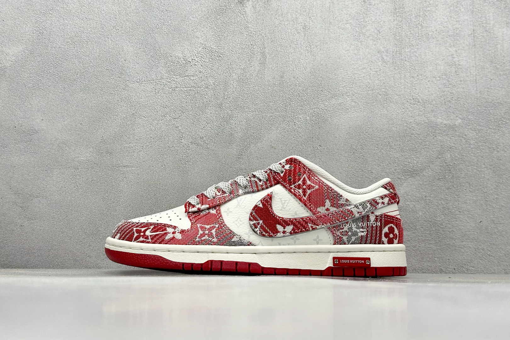 SC版Nike SB Dunk Low LV联名 灰红牛仔 周年高端定制 低帮休闲板鞋 SC9772-809