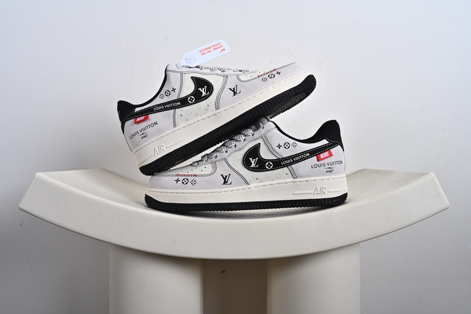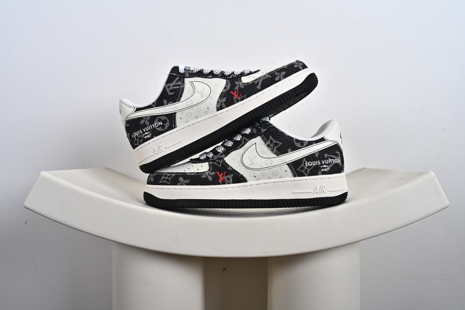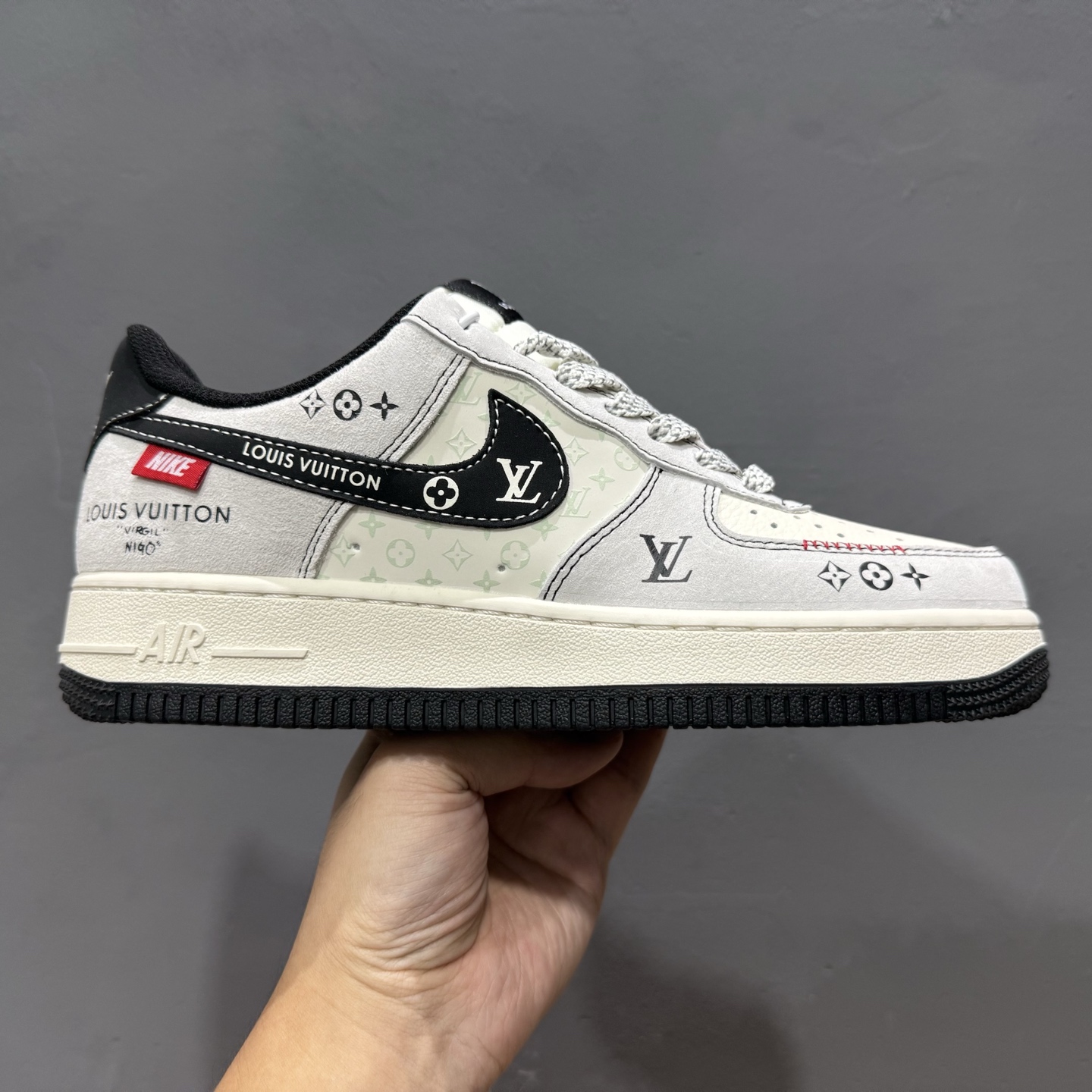 高端定制Nike Air Force 1 ’07 Low “路易威登LV联名—— 米白黑钩” 鞋身印刷 高端定制 低帮休闲板鞋 XD2588-601