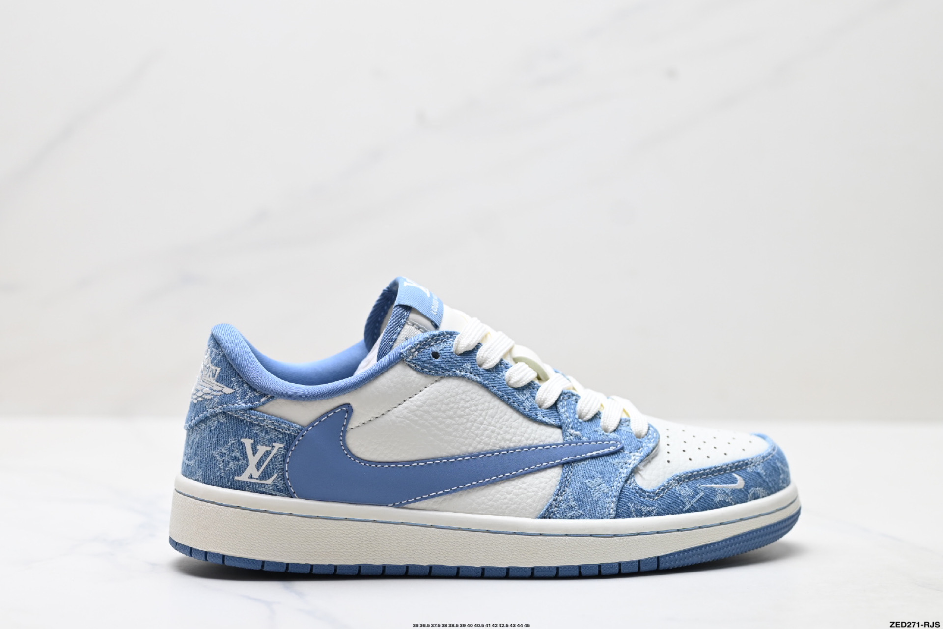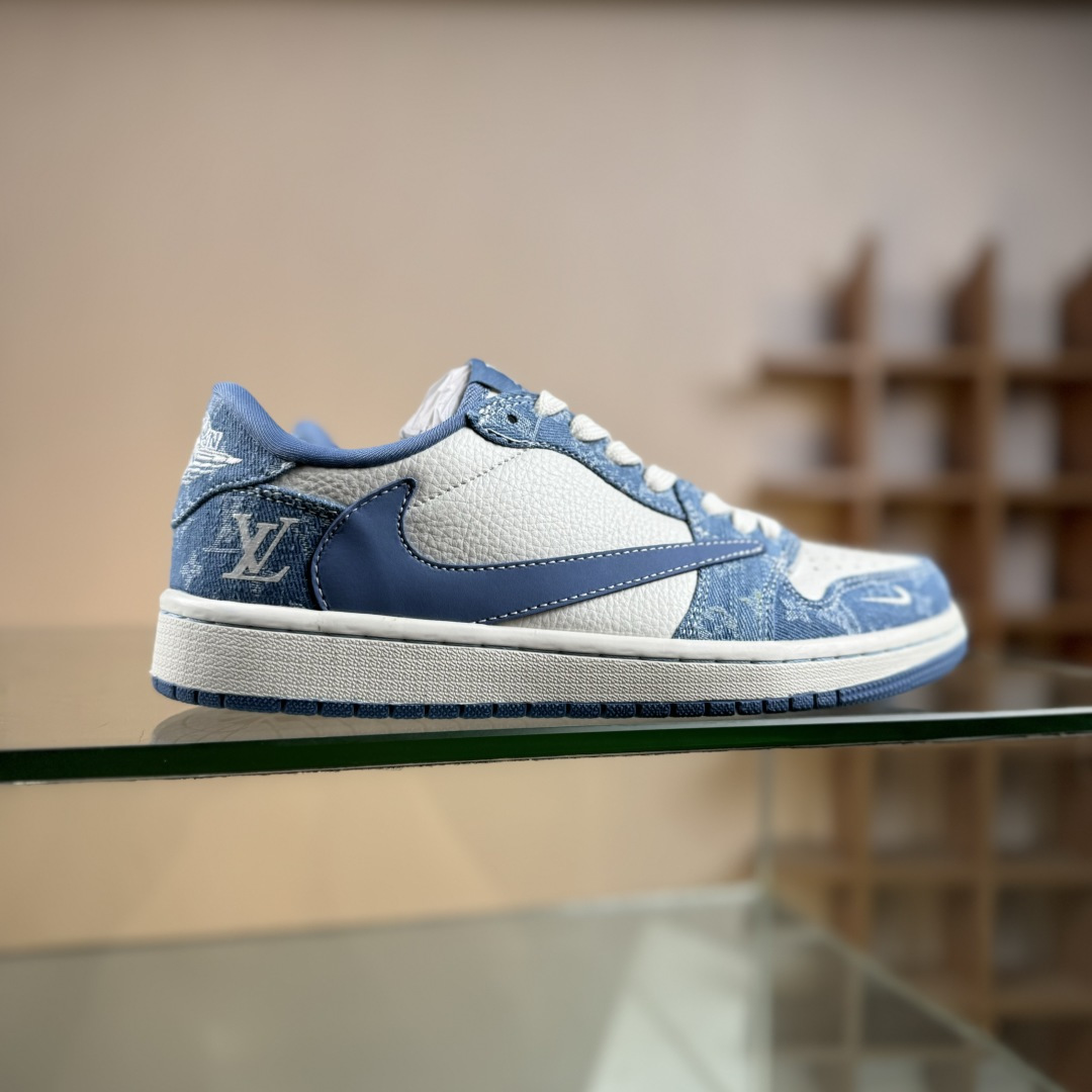 Travis Scott x Fragment Design x Air Jordan 1 Low SP AJ1 乔1 LV联名 白蓝牛仔 低帮文化休闲板鞋 SC0601-053