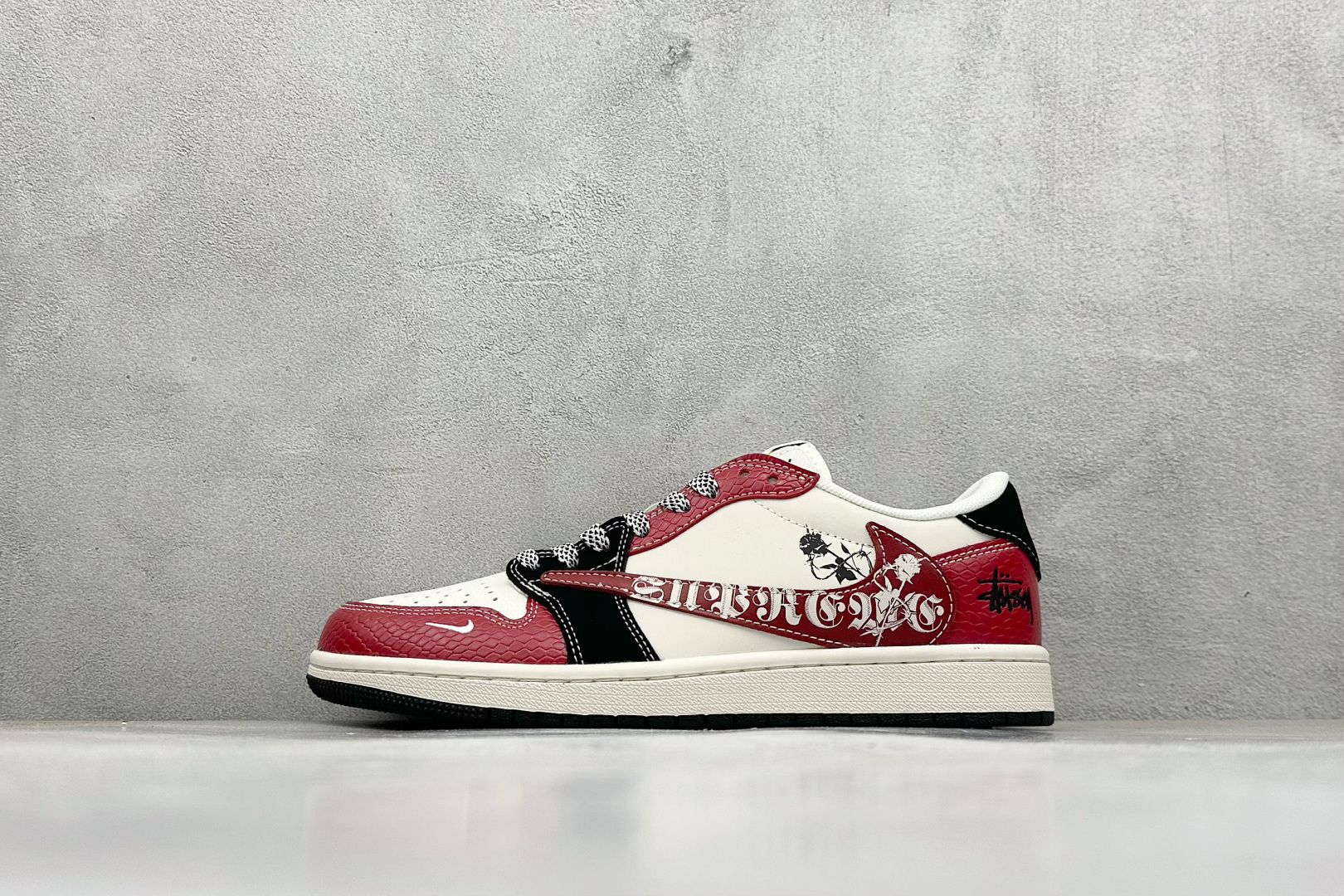 Travis Scott x Nike Air Jordan 1 Low x Stussy Air Jordan 1 Low 反转红白黑小勾满天星倒钩 HS8068-060
