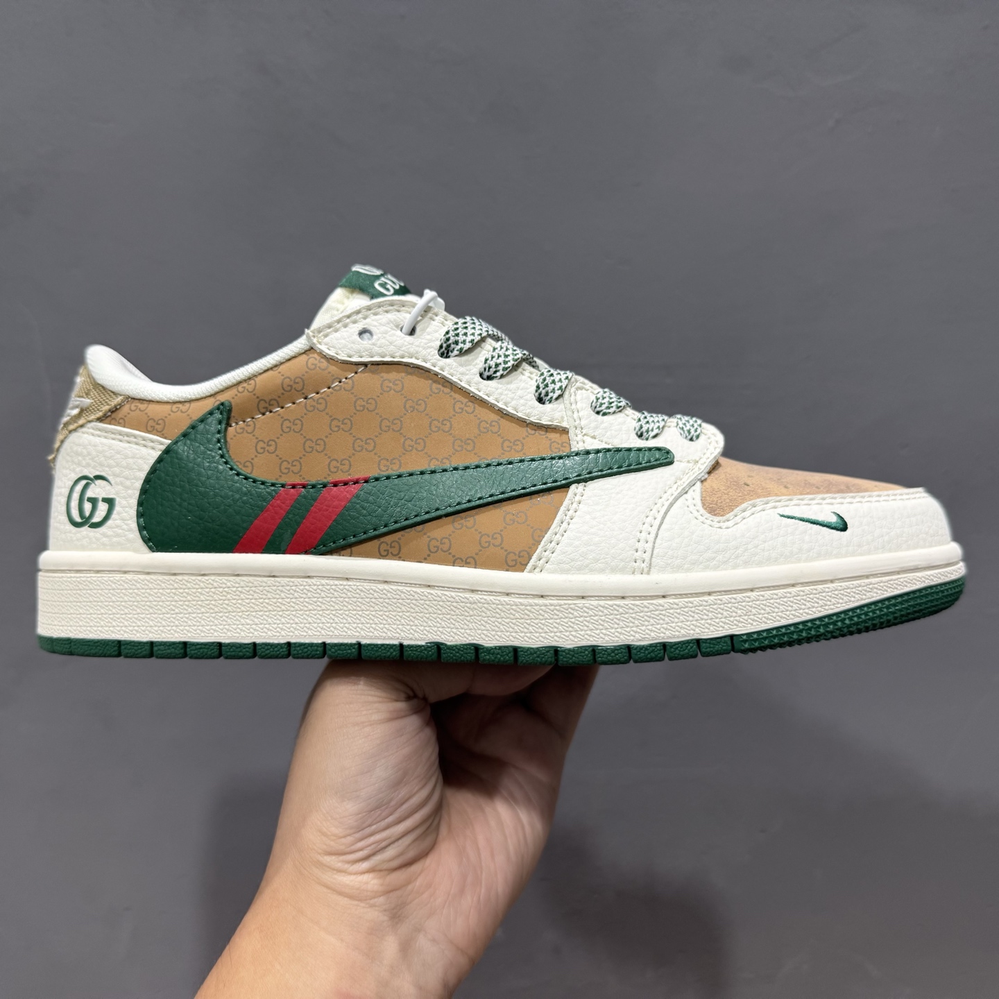 Nike Jordan Air Jordan 1 “古驰联名——花纹米绿红” 高端定制 乔丹低帮休闲板鞋 QW5088-206