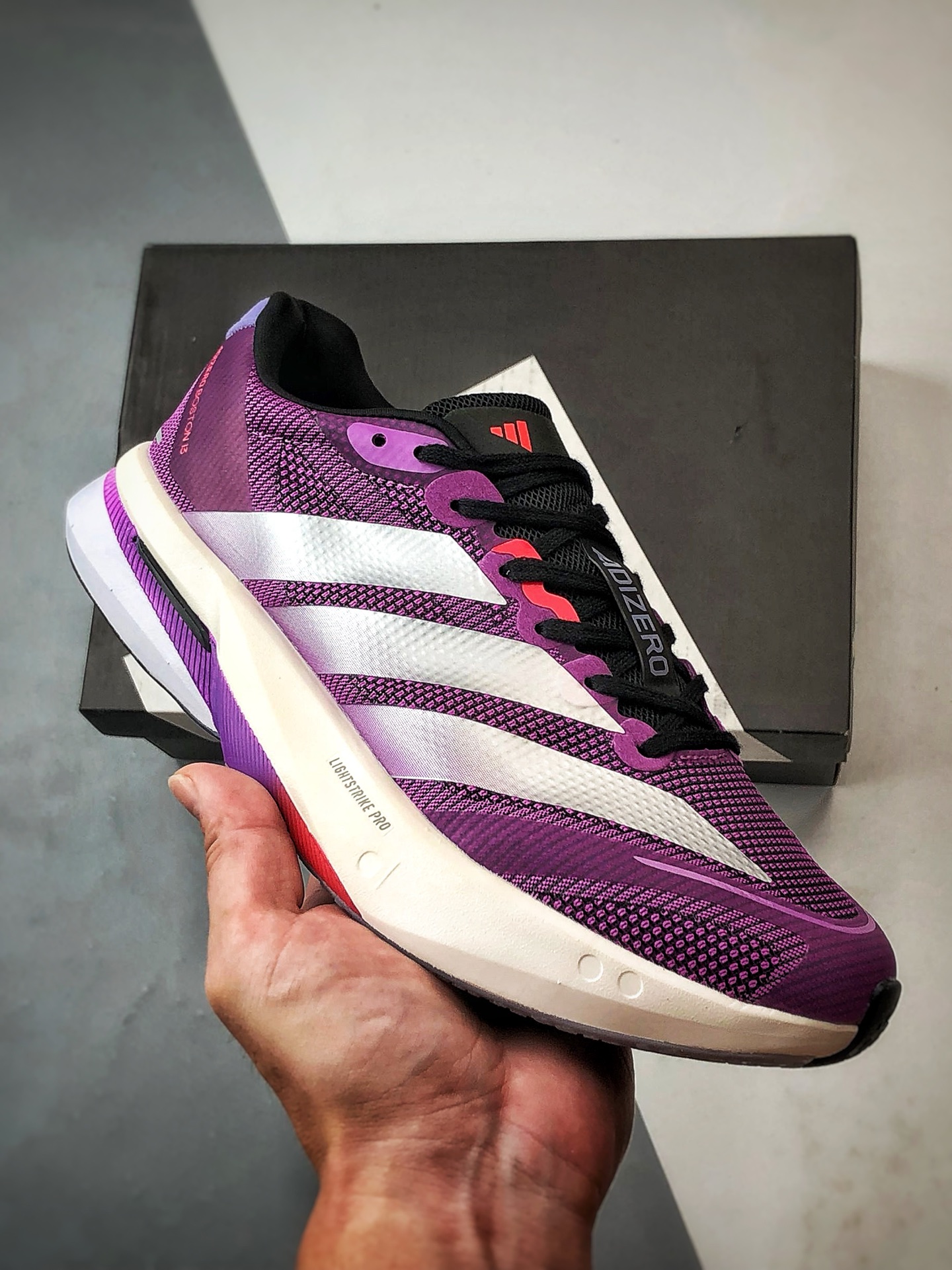 AD Adizero Boston 13 紫色 波士顿13超轻缓震玻纤柱竞速跑鞋 JS4943