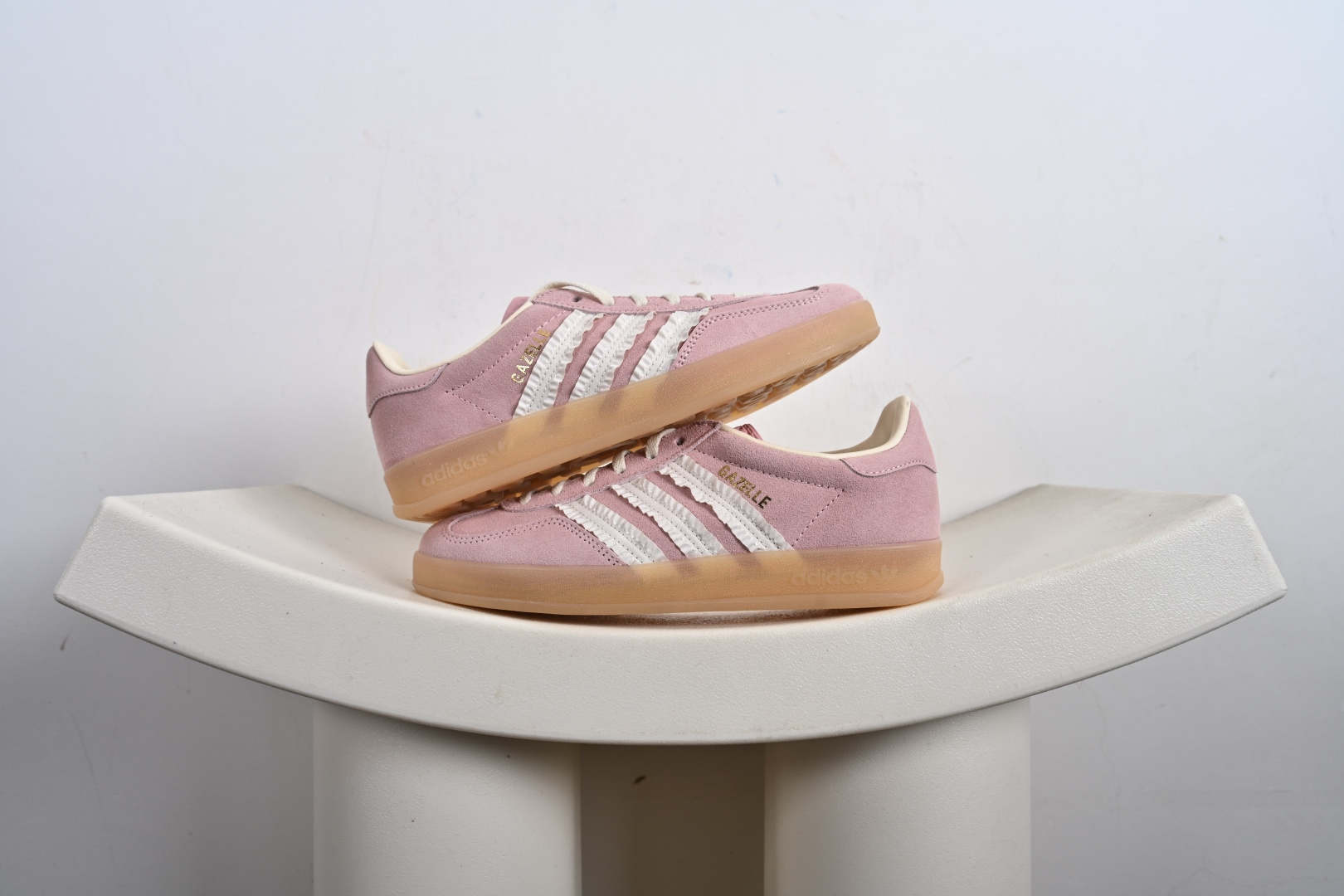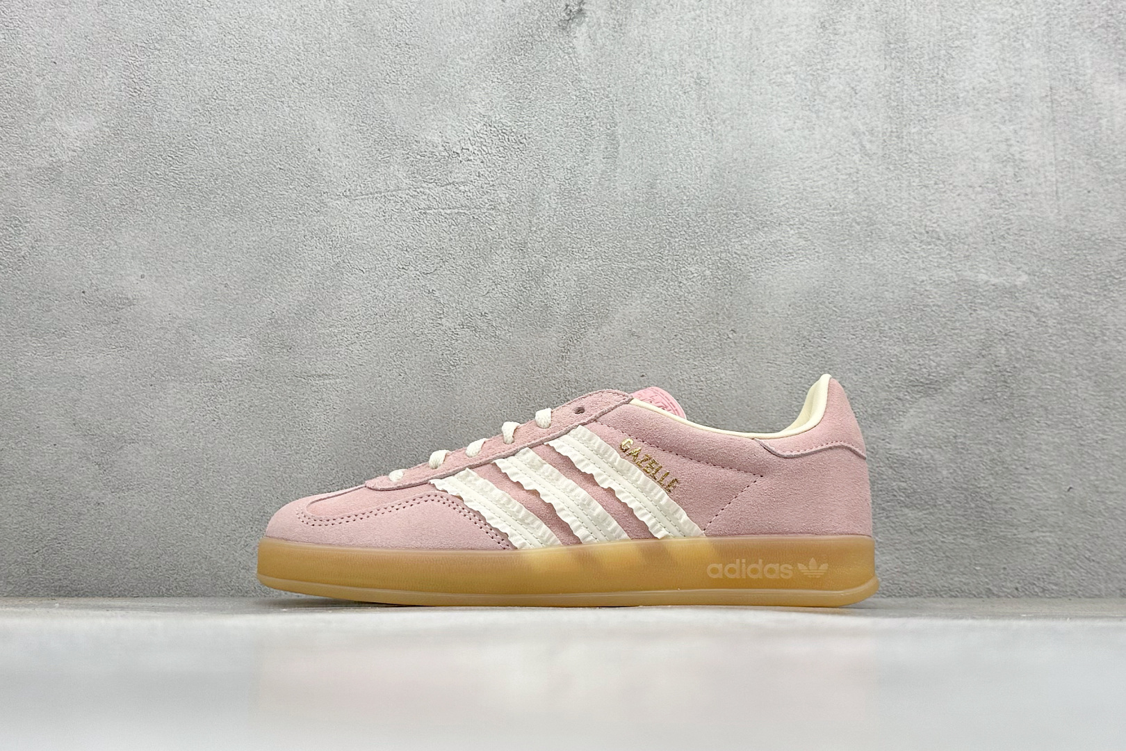 渠道纯原版 AD Gazelle Indoor Trainers 羚羊内训系列低帮复古百搭休闲运动德训风板鞋 粉白生胶花边 JS1413