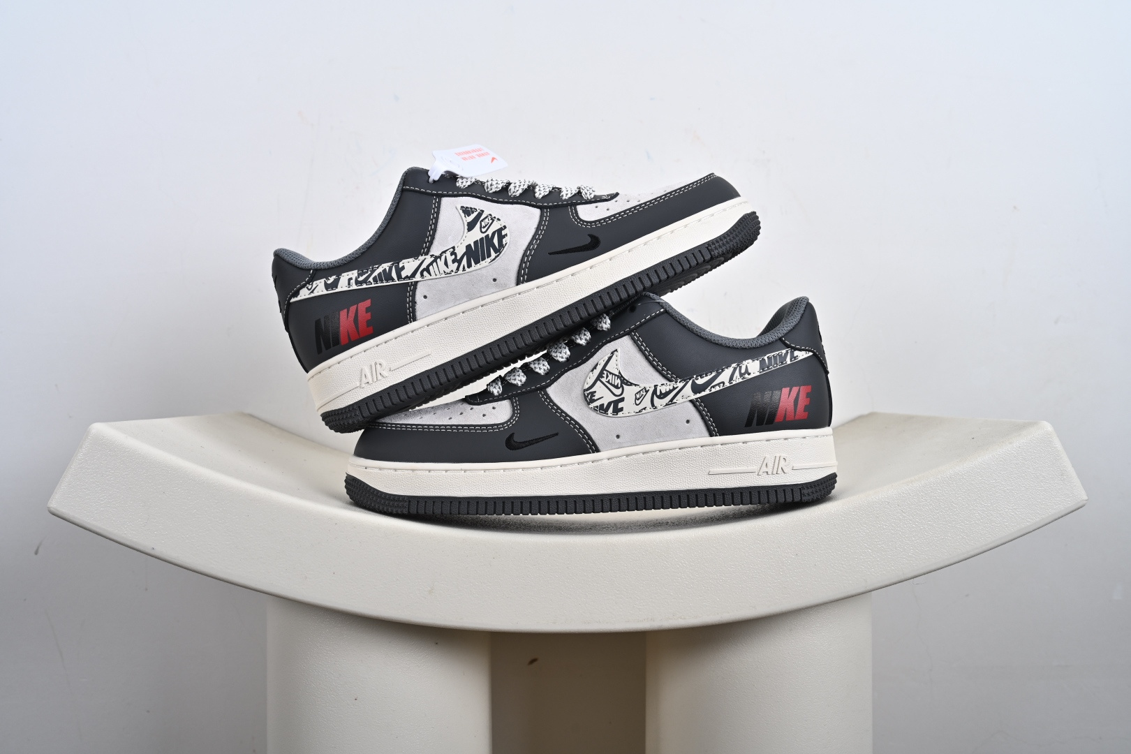Nike Jordan Air Jordan 1 “斯图西联名——台球米黑方格” 高端定制 乔丹低帮休闲板鞋 LJ2025-001